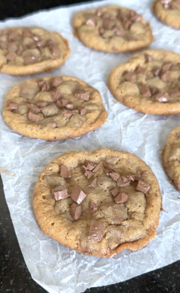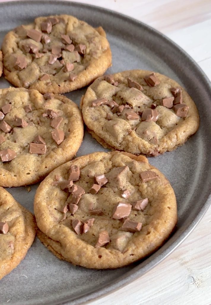 Ingenting slår doften av nybakade Chocolate Chip Cookies! 😍 Det här receptet är ren lycka! 🍪 Dessa Chocolate Chip Cookies är precis sådär amerikanskt perfekta! Jag har bakat denna variant med mjölkchoklad, därav att chokladen ser ganska ljus ut på bilderna, men man kan baka med mörk choklad, chokladknappar eller vilken choklad man vill.