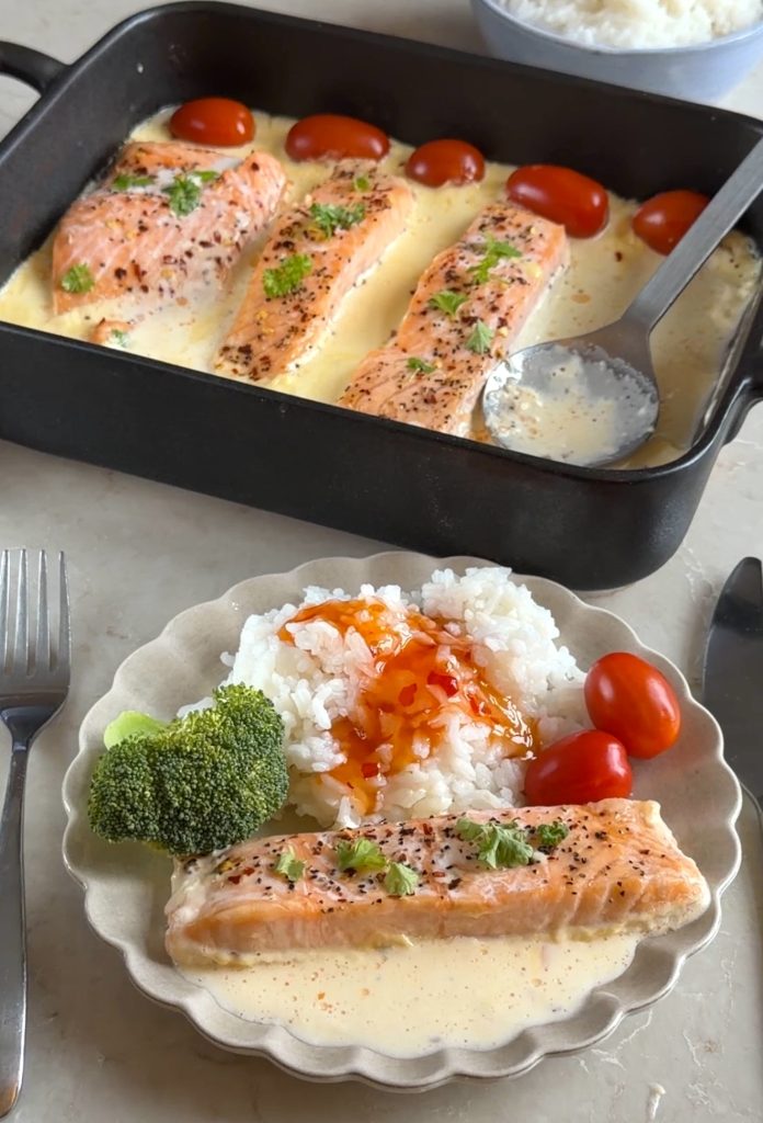 Snabblagad, lyxig middag som passar både vardag och helg! Jag föredrar att tillaga laxen på låg värme, runt 150 grader. Det tar lite längre tid, men resultatet blir en otroligt saftig och mör lax. Om du har bråttom går det fint att skruva upp till 175 grader – då går det snabbare och blir oftast minst lika gott och saftigt, men med den lägre temperaturen minimerar du risken att laxen blir lite för torr.