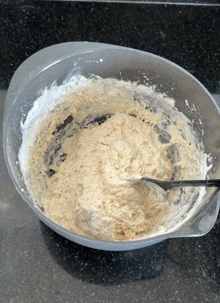 2. Tillsätt kvargen och ägg och blanda ihop till en kladdig deg.