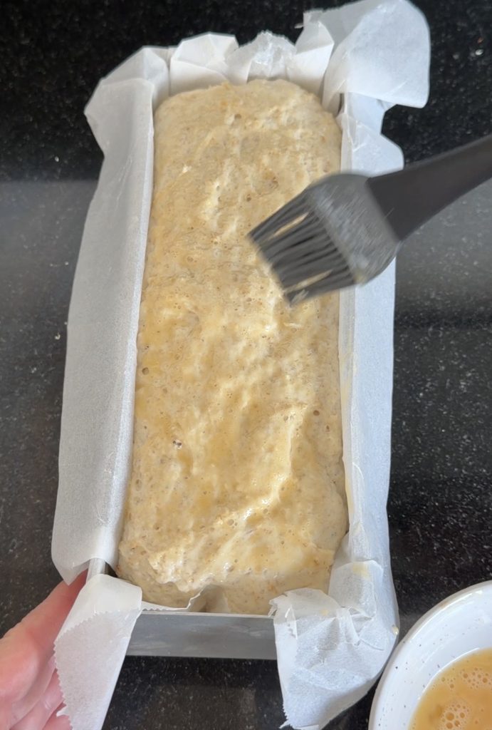 5. Pensla bröden med ägg och strö över lite havregryn