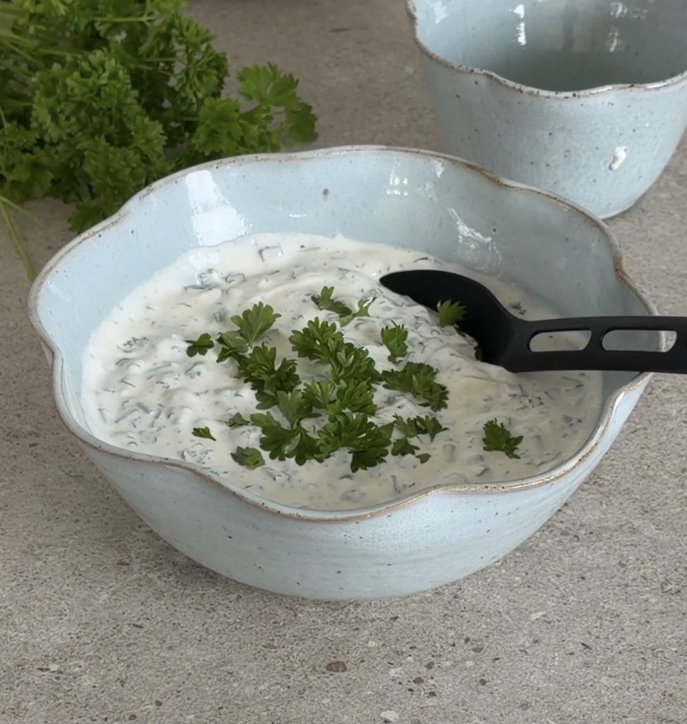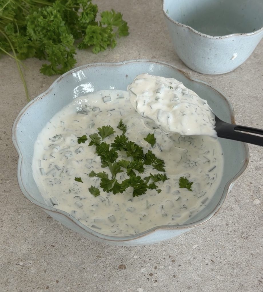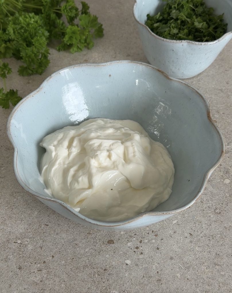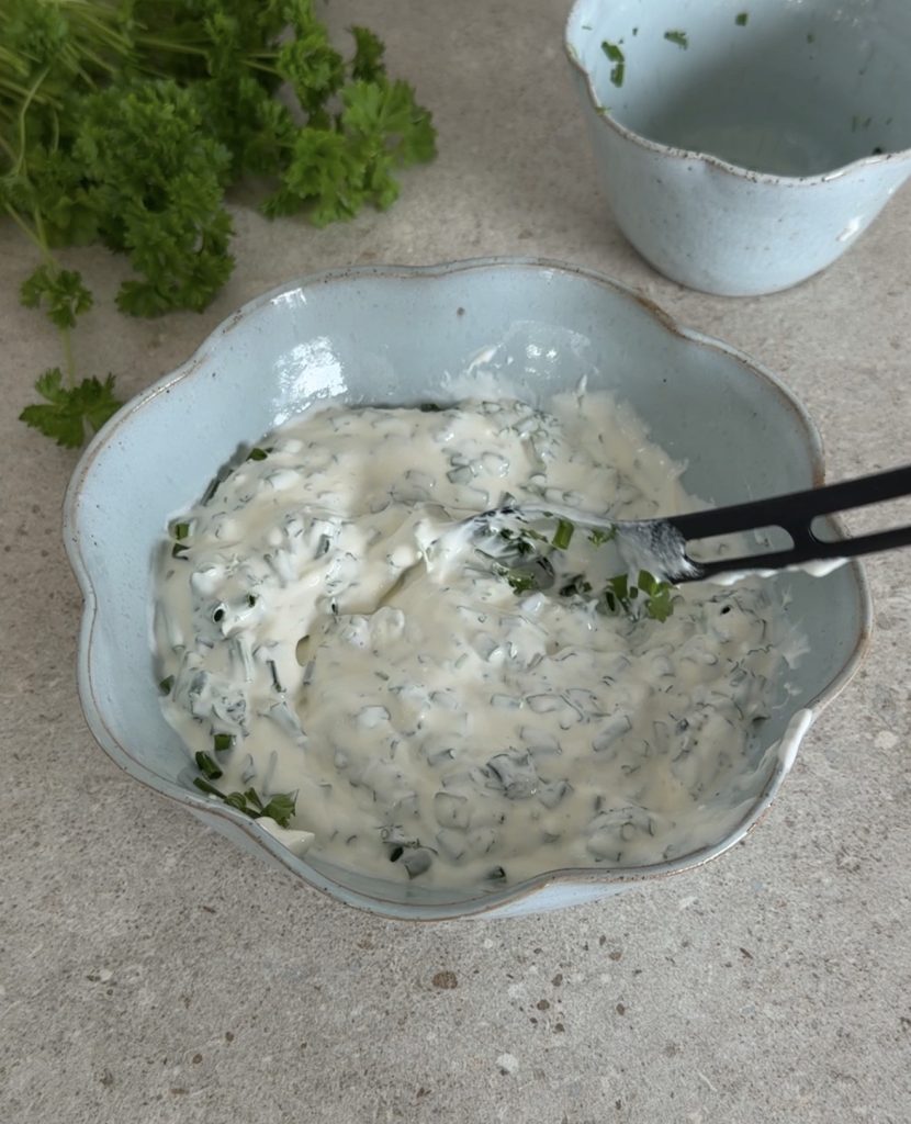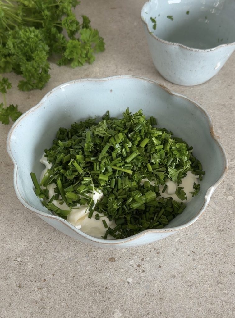 - Pensla botten på en ugnsform eller rund pajform med smält vitlökssmör.