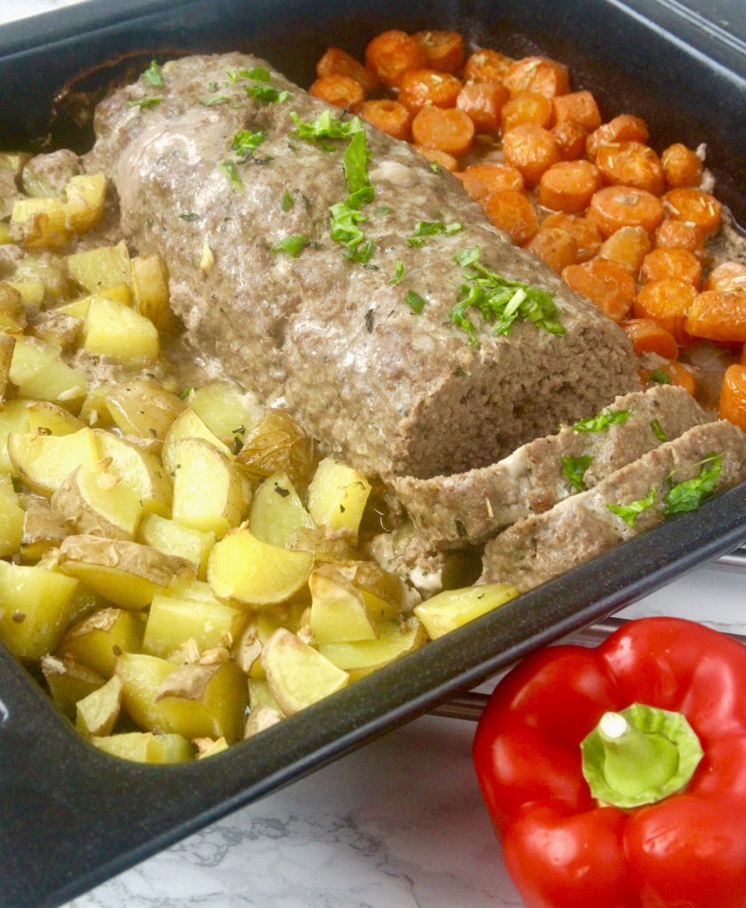 Köttfärslimpa & potatis på plåt