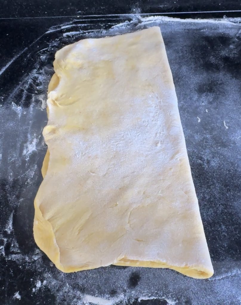 2. Dela degen i tvÄ delar. Kavla ut den första till en rektangel.