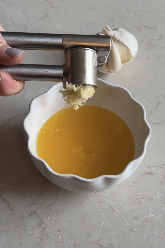 - Blanda det smälta smöret med pressad vitlök.