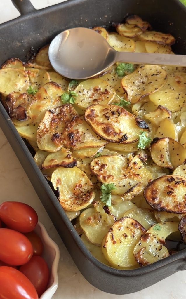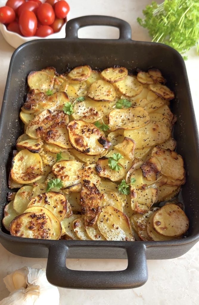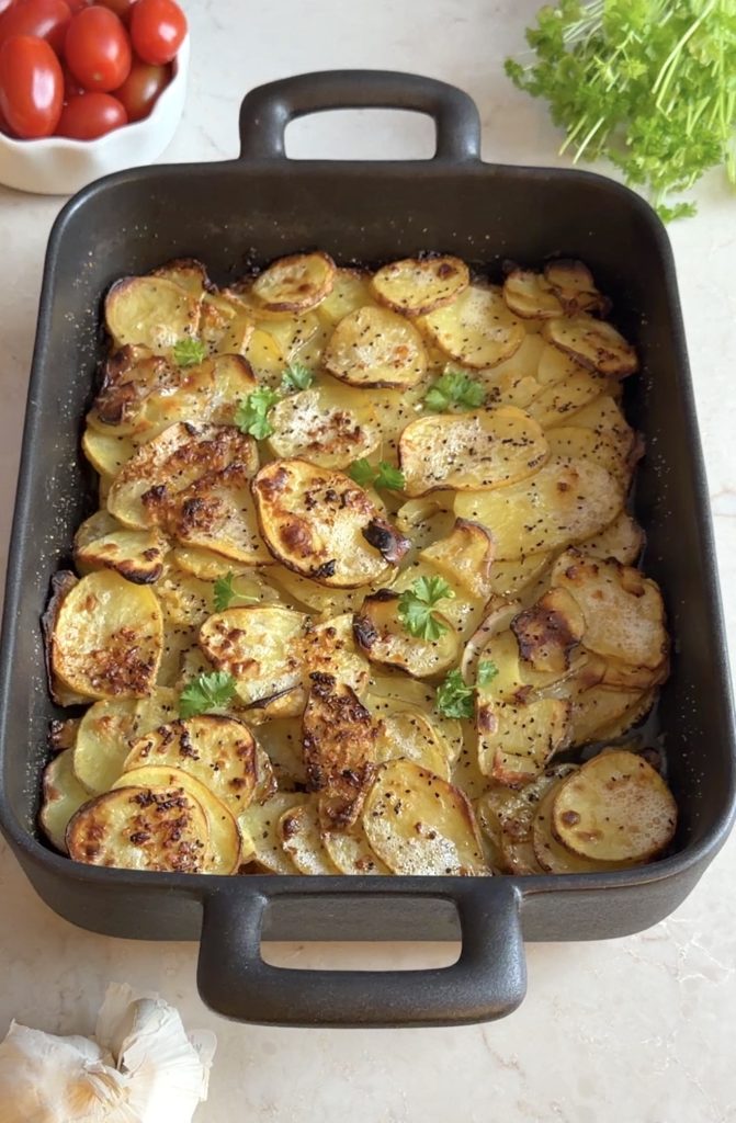 Tips! Strö lite parmesanost över potatisen i slutet av gräddningen.