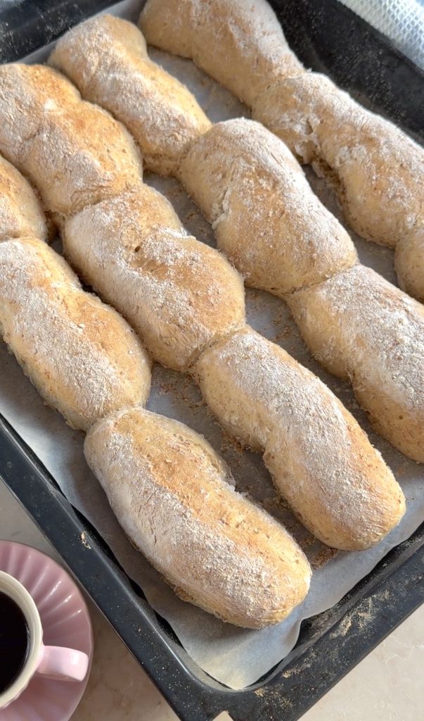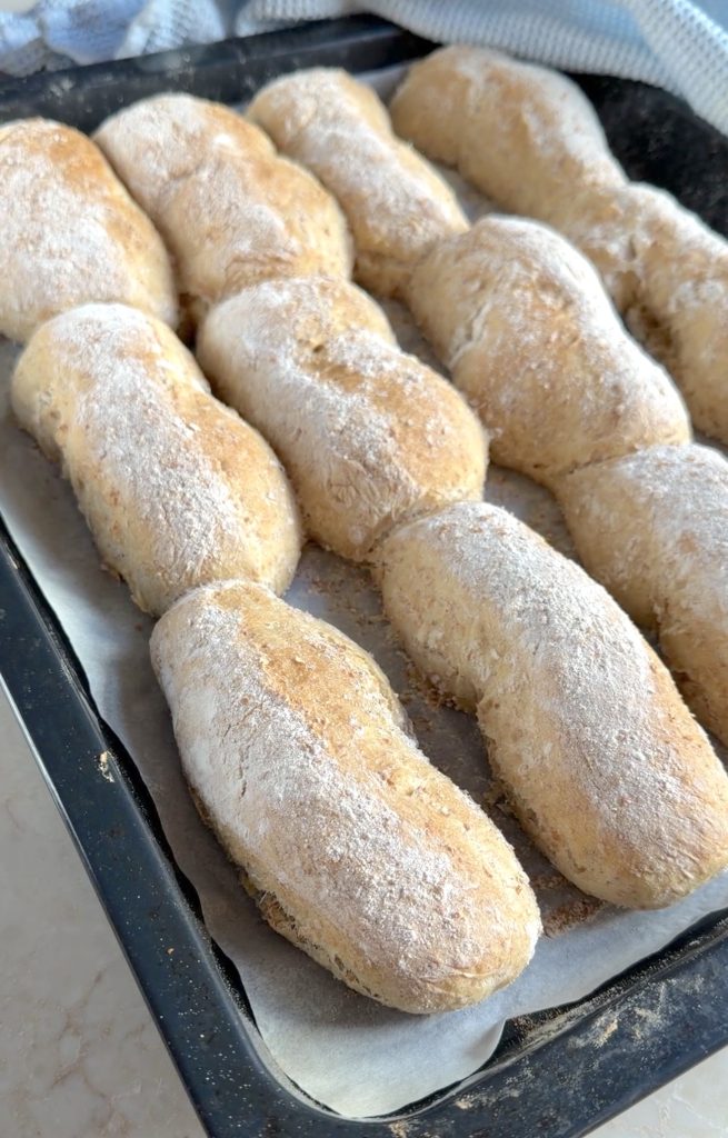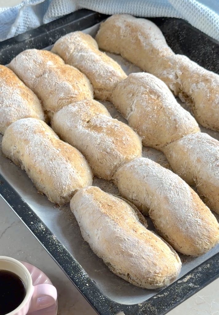 Baka därefter ut frallorna och lägg dem på en ugnsplåt med bakplåtspapper (punkt 4).
