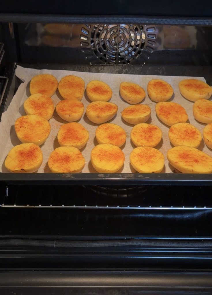 Potatishalvor i ugn