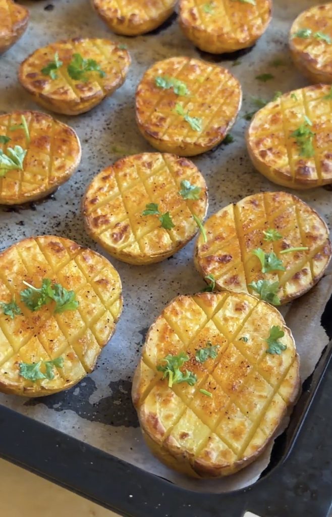 De här potatishalvorna med kryssmönster är en riktig favorit. Genom att snitta potatisen skapar man små kanaler där oljan och grillkryddan verkligen kan sjunka in och ge smak på djupet. Det ser dessutom otroligt proffsigt ut på tallriken trots att det knappt kräver någon ansträngning alls. Perfekt till grillat, en saftig biff, en laxbit eller varför inte bara precis som de är med en klick kall sås!