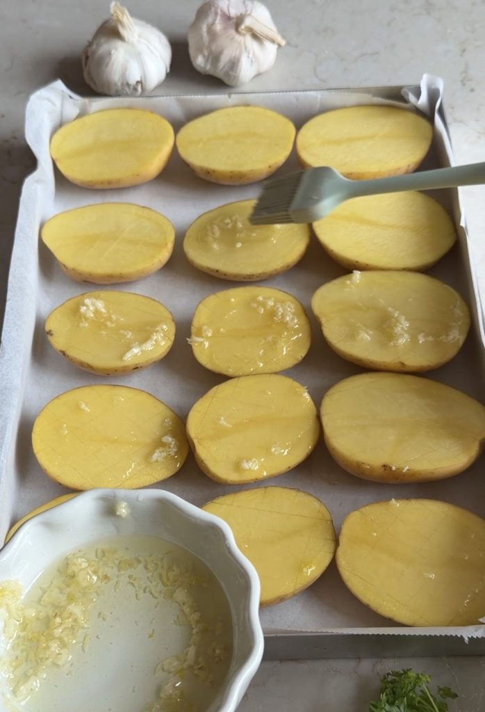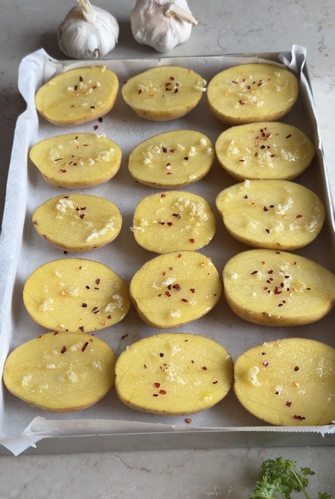 Potatishalvor i ugn vitlök