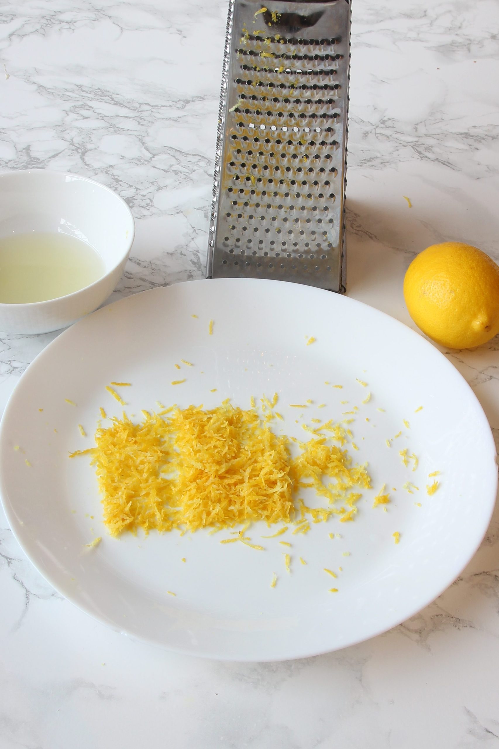 - Riv citronskalet fint och pressa ut citronsaften i en skål.