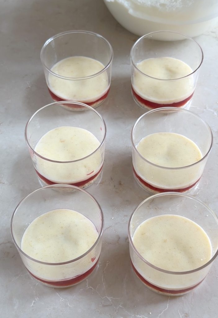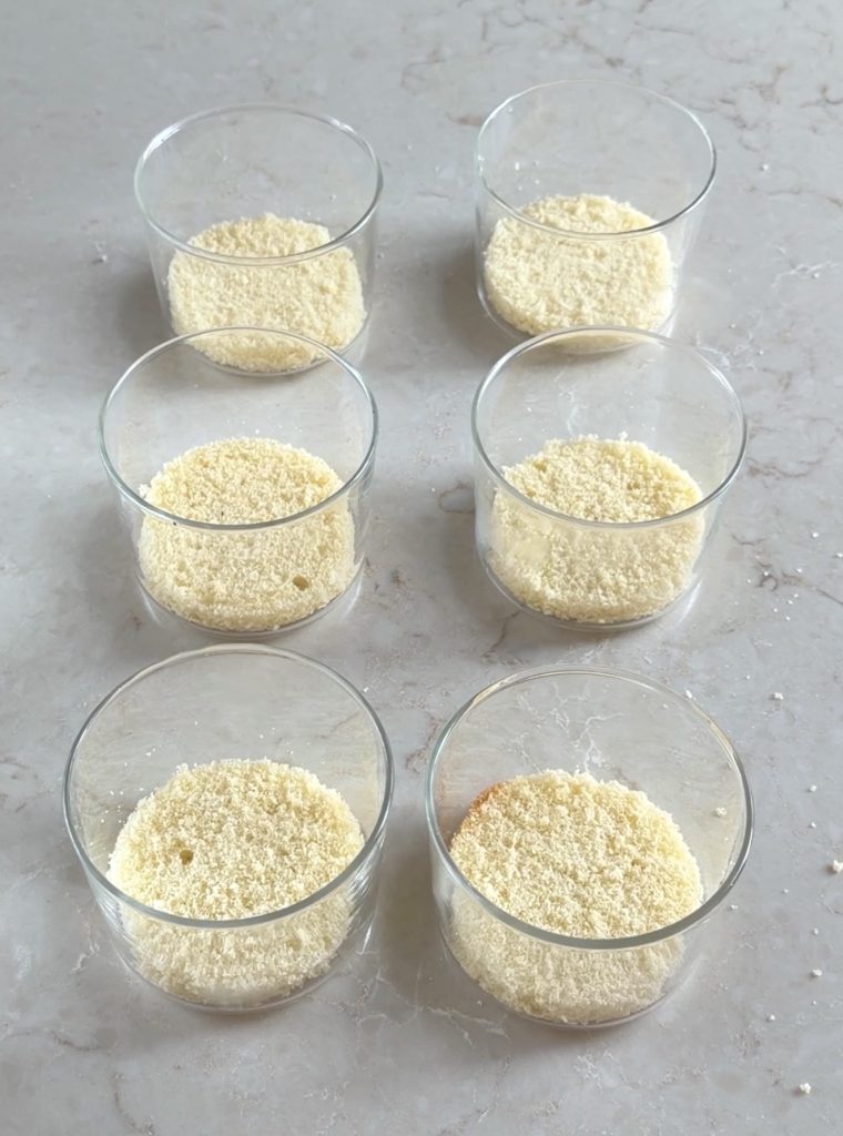 2. Lägg tårtbottnarna i botten på dina glas.