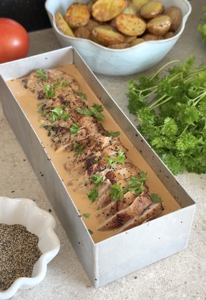 Genom att tillaga filén i en limpform (brödform) och hälla över den krämiga såsen före servering så blir köttet otroligt mört och tar upp alla goda smaker utan att torka ut. Här hittar du fler goda matrecept – klicka här!