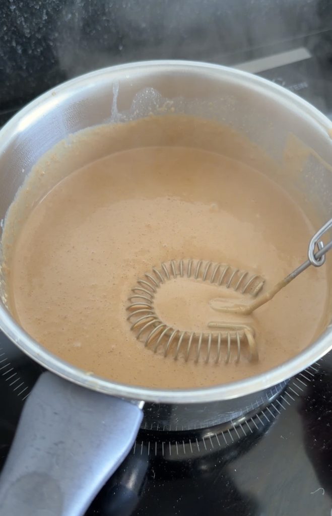 1. Vispa ihop den kalla mjölken och vetemjöl ordentligt i en kastrull.
