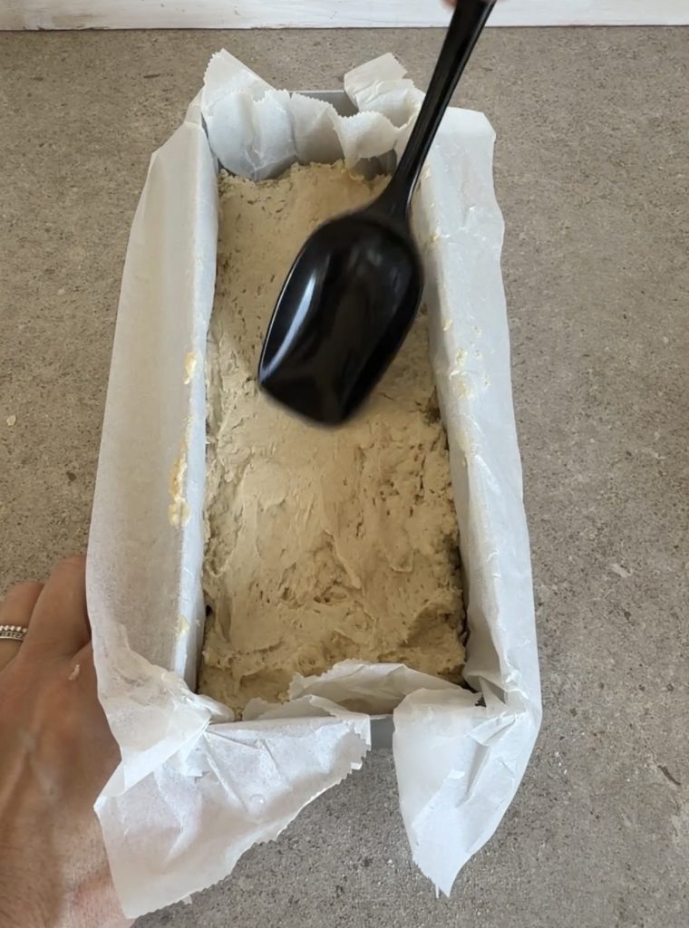 2. Klä Lindas avlånga limpform med ett bakplåtspapper.