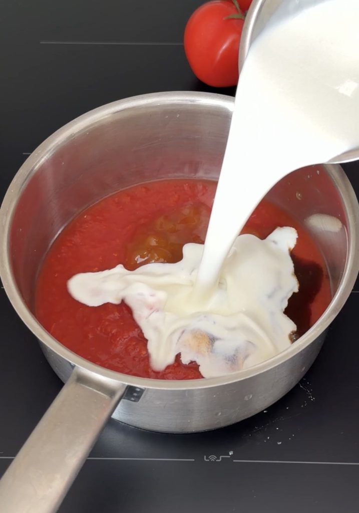 Ibland är de enklaste recepten de allra bästa. Den här såsen har blivit en riktig favorit i mitt kök när jag vill ha något som smakar "lyxigt" men bara tar några minuter att slänga ihop. Den innehåller både grädde och krossade tomater och denna kombo blir så god! Det går bra med vilken fetthalt du vill på grädden.