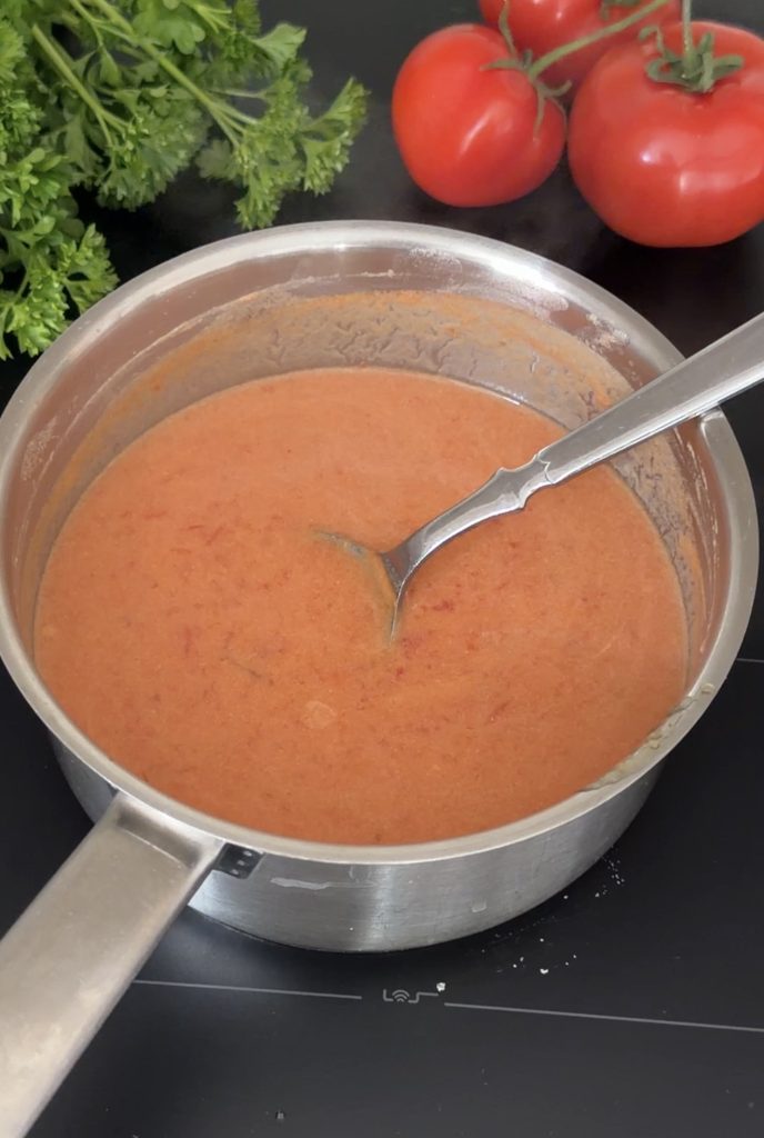 2. Låt såsen puttra på låg värme i kastrullen i ca 5 minuter.
