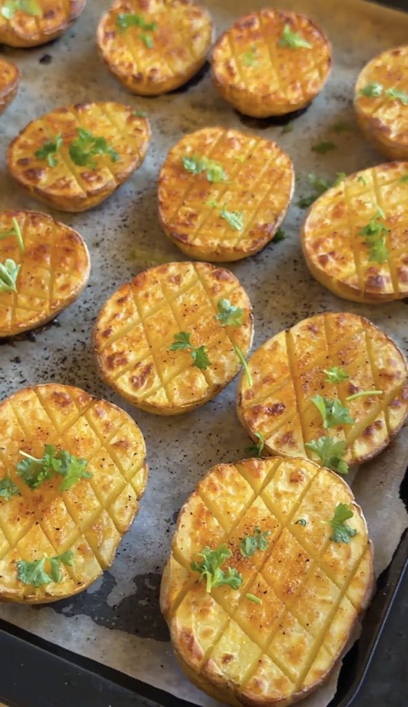 De här potatishalvorna med kryssmönster är en riktig favorit. Genom att snitta potatisen skapar man små kanaler där oljan och grillkryddan verkligen kan sjunka in och ge smak på djupet. Det ser dessutom otroligt proffsigt ut på tallriken trots att det knappt kräver någon ansträngning alls. Perfekt till grillat, en saftig biff, en laxbit eller …