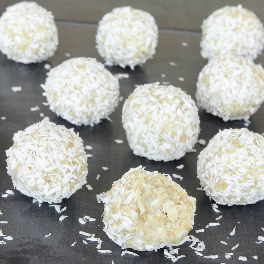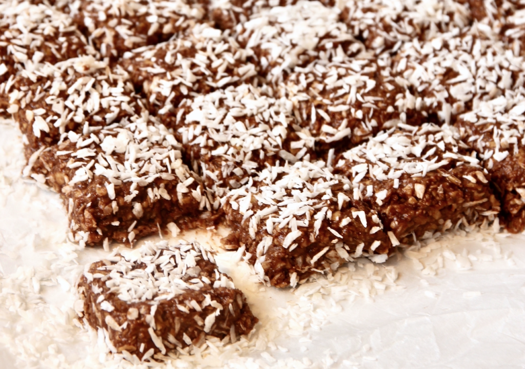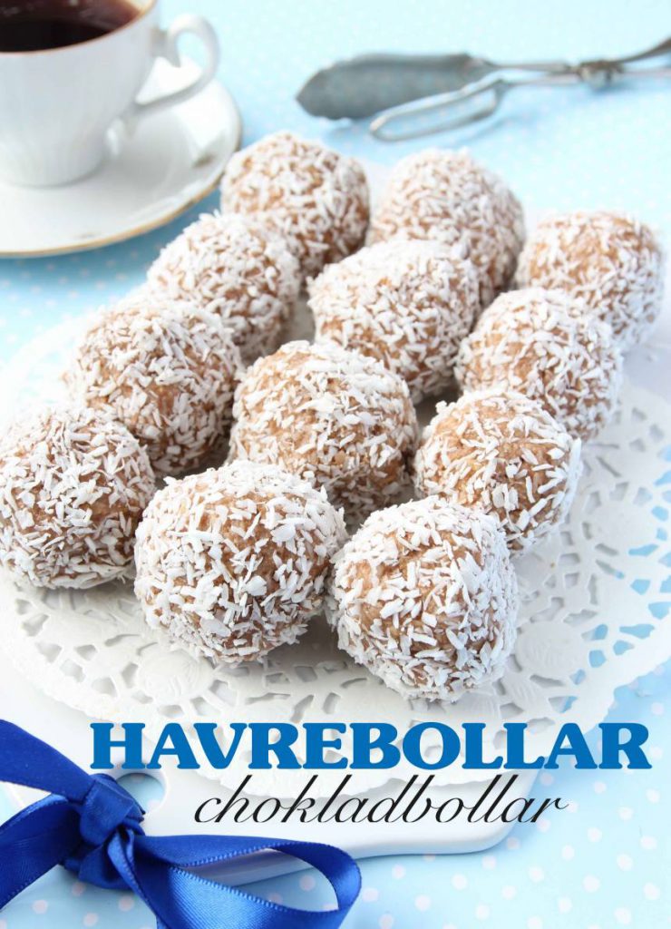Kalasgoda havrebollar med riven, vit choklad istället för kakao. Riktiga 10-poängare!